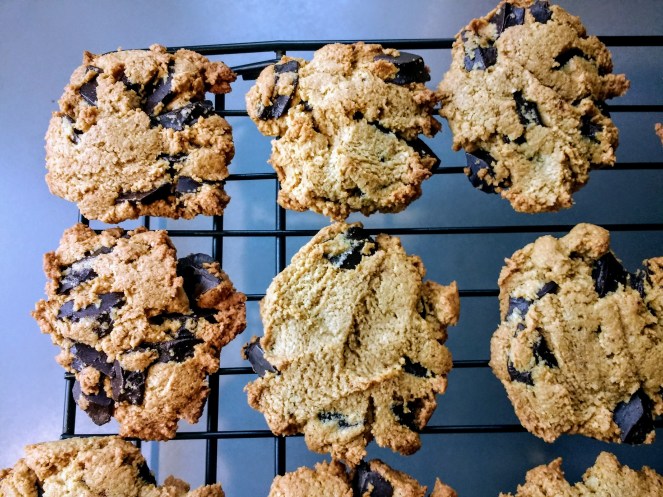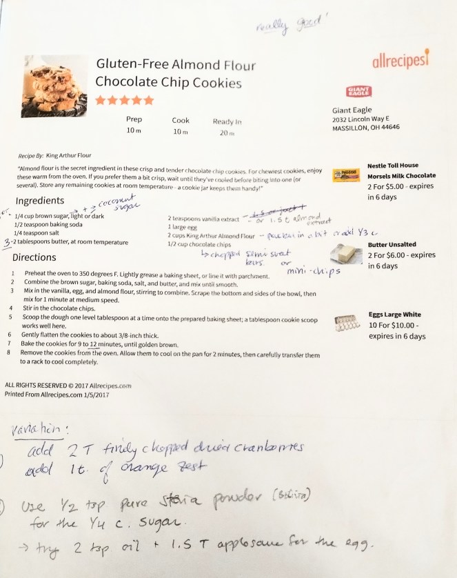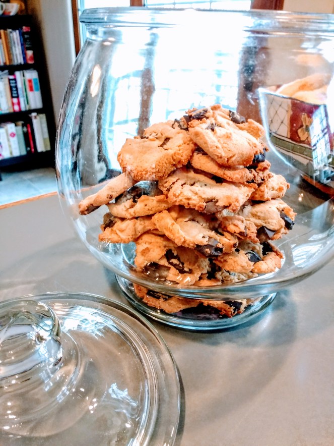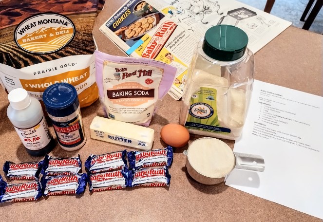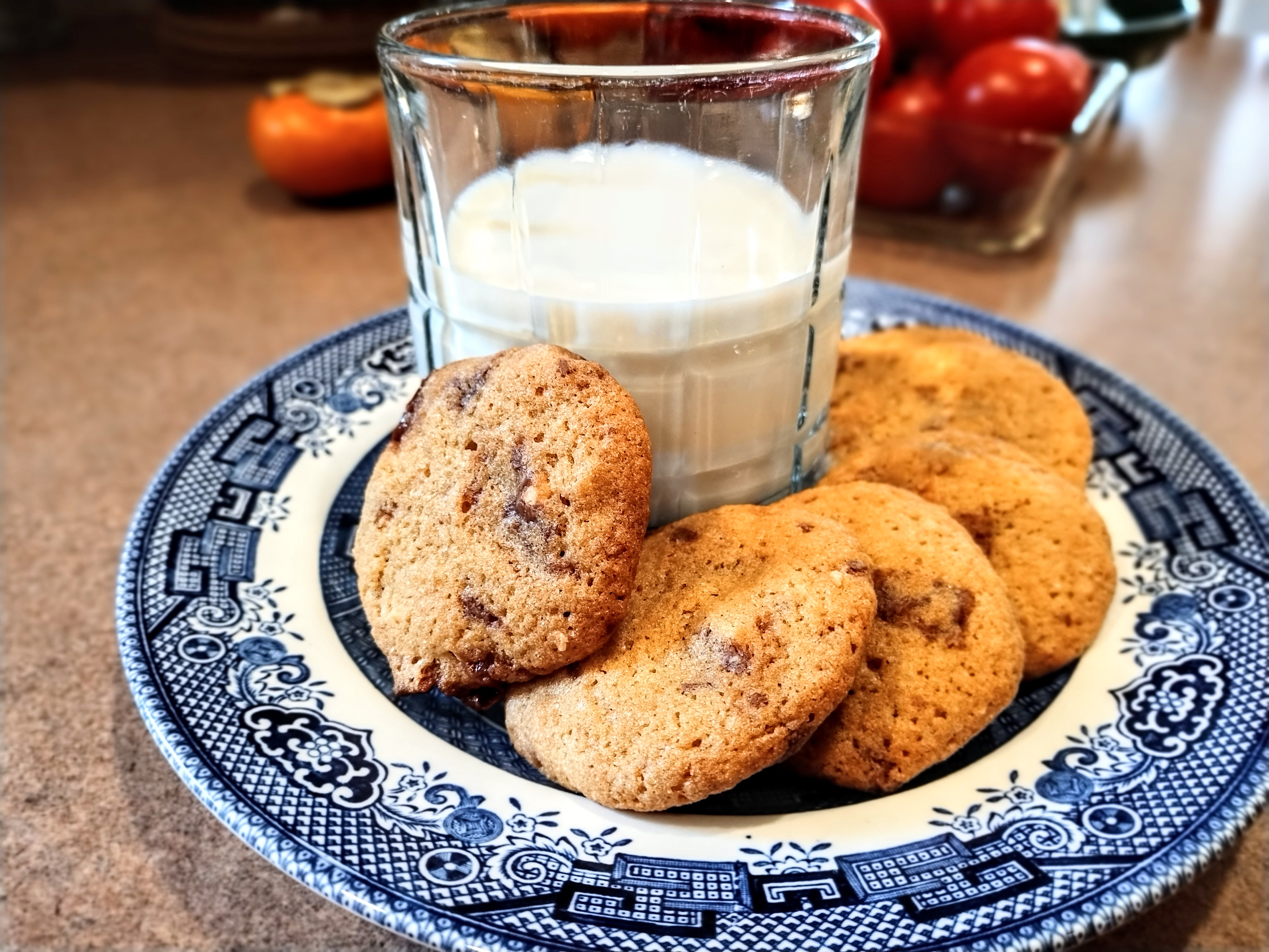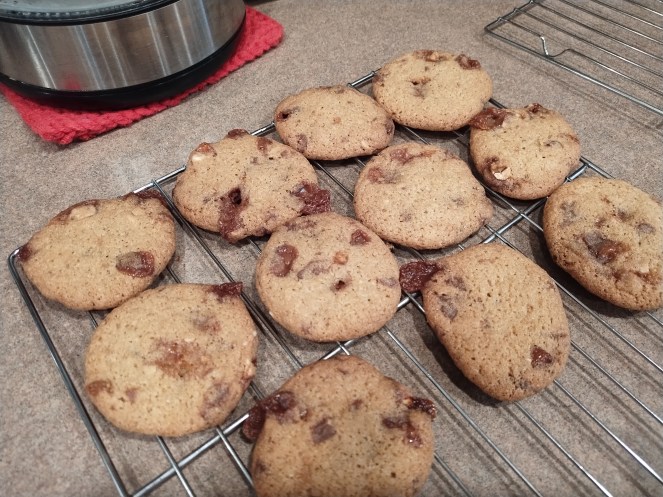 Otherwise, the recipe is a basic, tasty cookie that goes well with a tea or coffee break. Pair a couple of cookies with a cheese stick or beef stick if you want to avoid a woozy-doozy blood sugar spike. The cookie itself uses a bit less sugar than modern cookie recipes, and this you can adjust even more to reduce the sugar profile. Most of the sweetness comes from the Baby Ruth bar. You could experiment with other candy bar flavors in the same manner, a Snickers cookie, a Skor bar cookie (toffee and chocolate), etc. Some candy bars may work better than others, I’m thinking Three Musketeers would melt in a messy fashion.