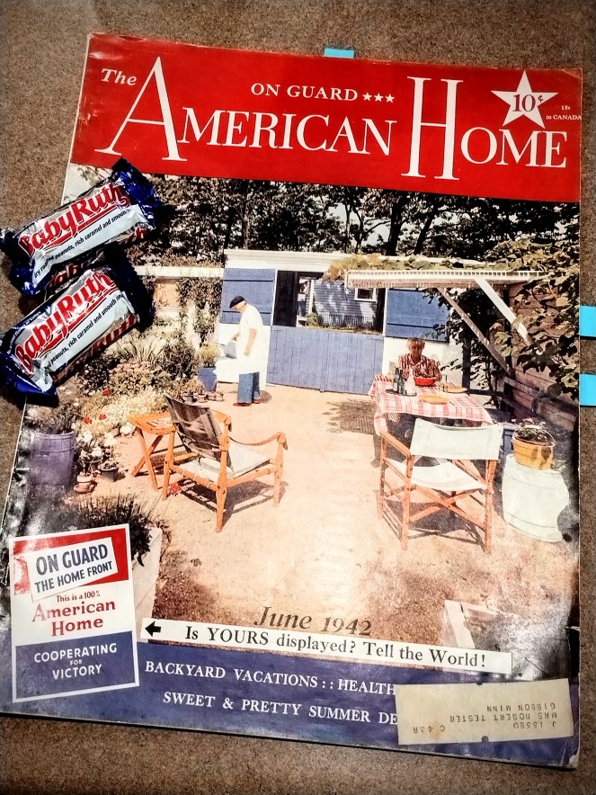 Flipping through the June 1942 issue of The American Home is like walking into a World War Two time capsule. Featuring the “On Guard the Home Front: Cooperating for Victory” label, it offered suggestions for how to use rationed items frugally, how to save items that would otherwise go to waste, and how to save money on family vacations by camping and other home-made fun (see the PDF link at the end to explore the pages of this issue).